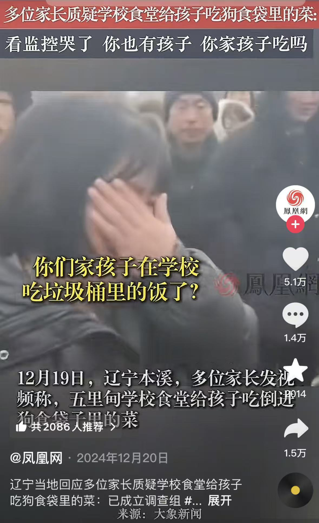 还有辽宁一个学校,给孩子吃倒进狗食袋子里的菜。