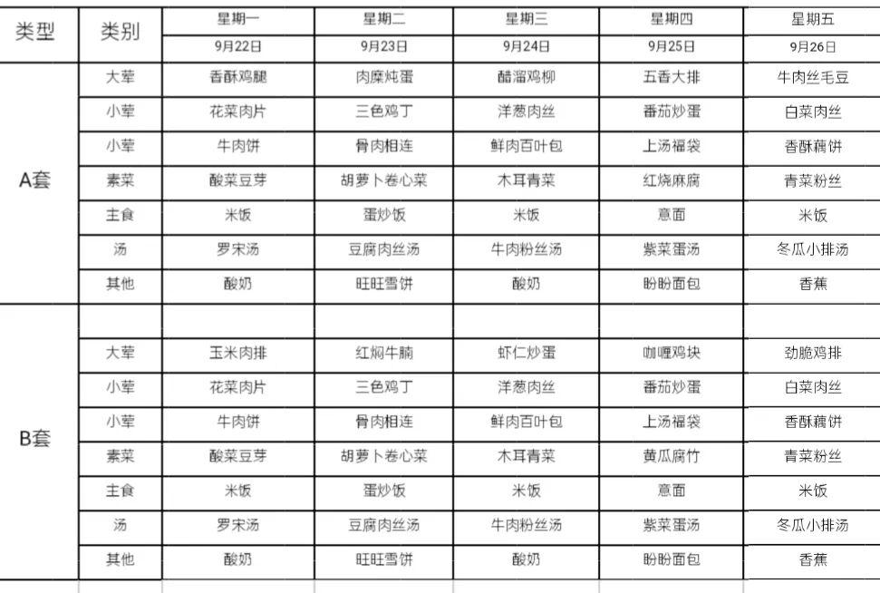而所谓的A餐和B餐,其实也就是一个菜不一样。