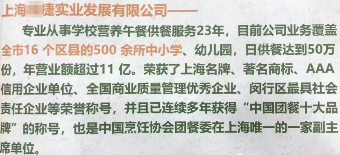现在上海大部分学校都是某捷公司供餐,光是8月份,他们就中了20多所学校的供餐项目。