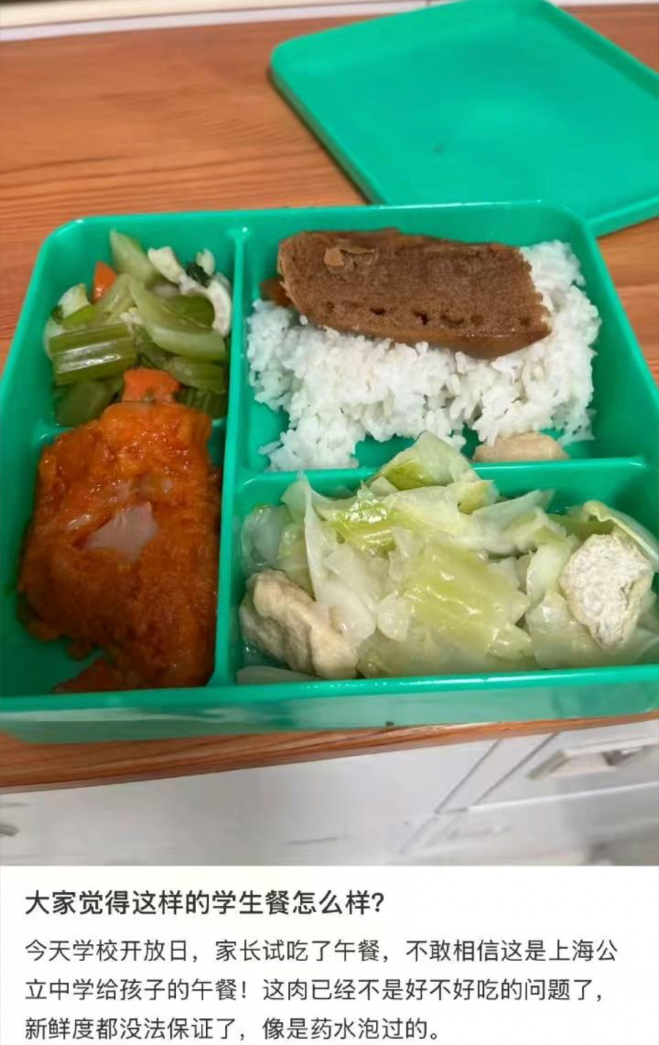 其实难吃就算了,但家长们最愤怒的是,连食品安全都保证不了。