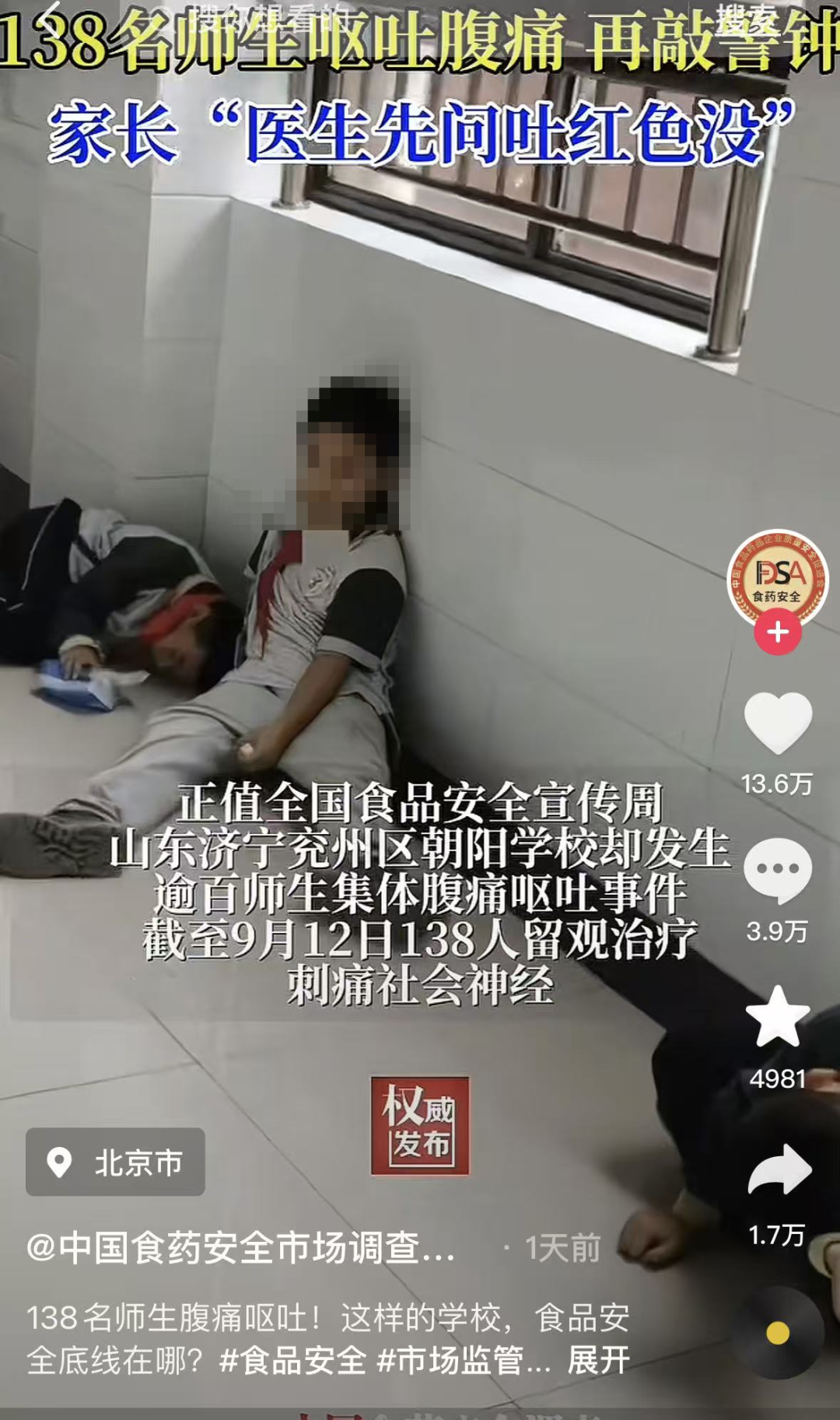 138个孩子集体腹痛呕吐,被紧急送医治疗。