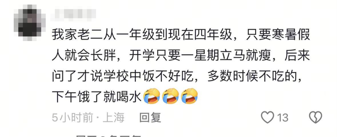 而现在正是孩子长身体的时候,长期饿着不吃饭,或者回家暴饮暴食,真的是会影响孩子身体一辈子。