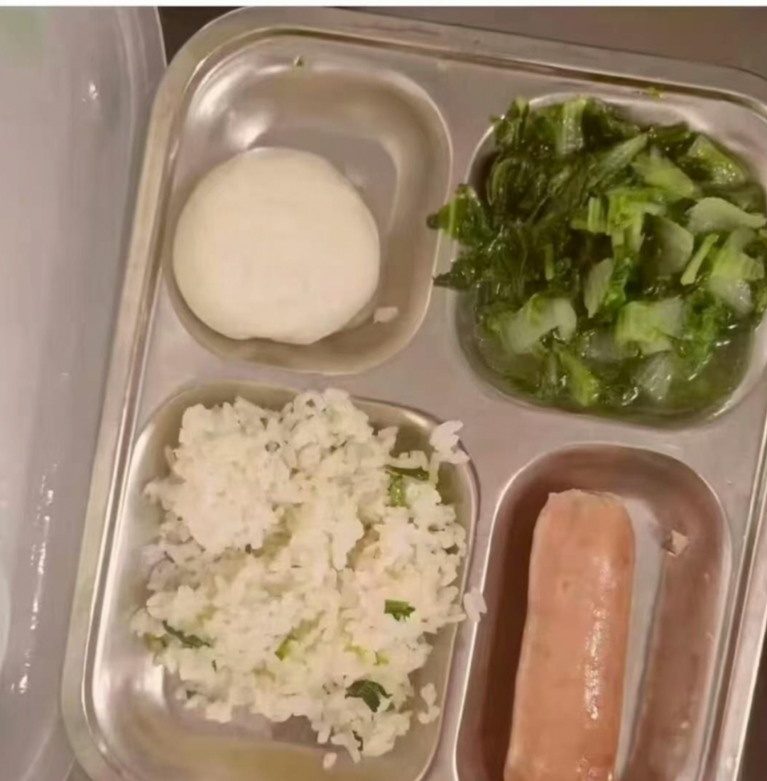 孩子们不想吃都没办法,学校不允许孩子带饭,也不让吃面包零食,孩子不吃就只能饿着。